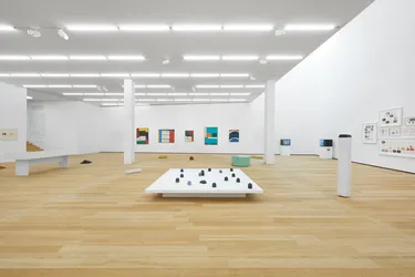Anhand einer Auswahl von mehr als siebzig Werken durchläuft die Ausstellung alle sechzig Jahre seiner künstlerischen Karriere: von den ersten Versuchen auf dem Gebiet der abstrakten Malerei und des Neoplastizismus, über das Experimentieren mit dem bewegten Bild und einer völlig unkonventionellen Form der Animation, bis hin zu den Floats – den berühmten beweglichen Skulpturen, welche als reale Entwicklungen von abstrakten und anti-narrativen Formen im dreidimensionalen Raum, die bildliche und kinematografische Forschung des Künstlers charakterisieren.